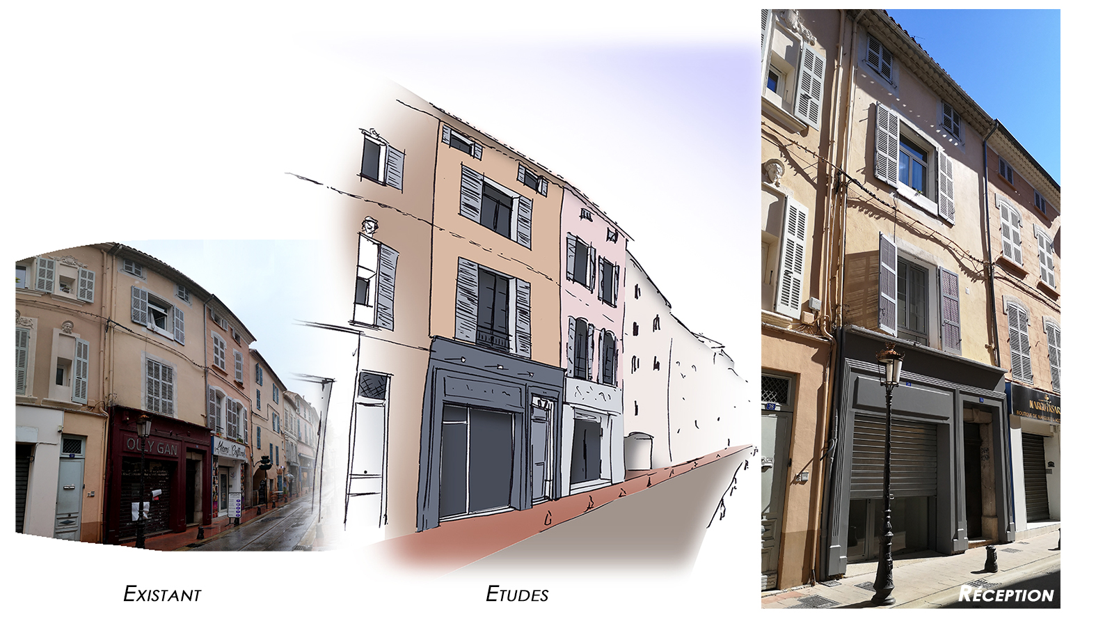 de réorganiser un vaste local commercial devenu inadapté en local commercial repensé et mis aux normes, accompagné de deux appartements (T1 et T2) en cœur de ville brignolais. La rénovation